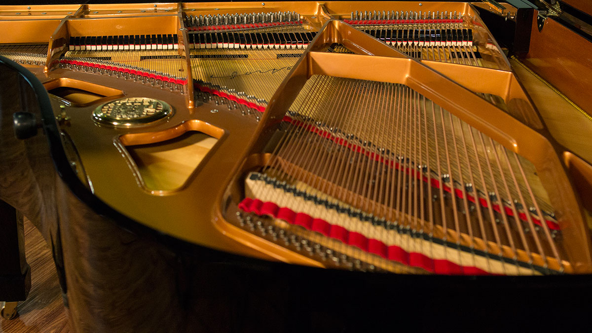 The fine quality spruce soundboard has excellent crown for a powerful, sustained tone. The tuning is also very stable. The case looks gorgeous as well.